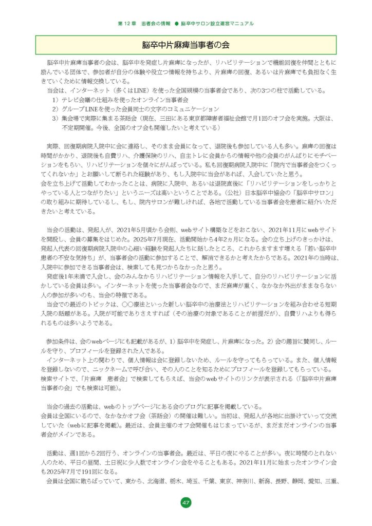 (↑ (公社)日本脳卒中協会の「脳卒中サロン 設立・運営マニュアル」の